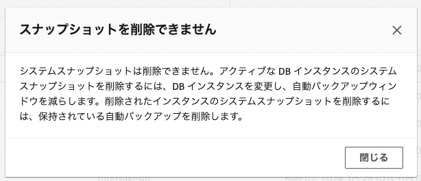 RDSのスナップショットが削除できずにつまづいたので、解決方法をまとめました。