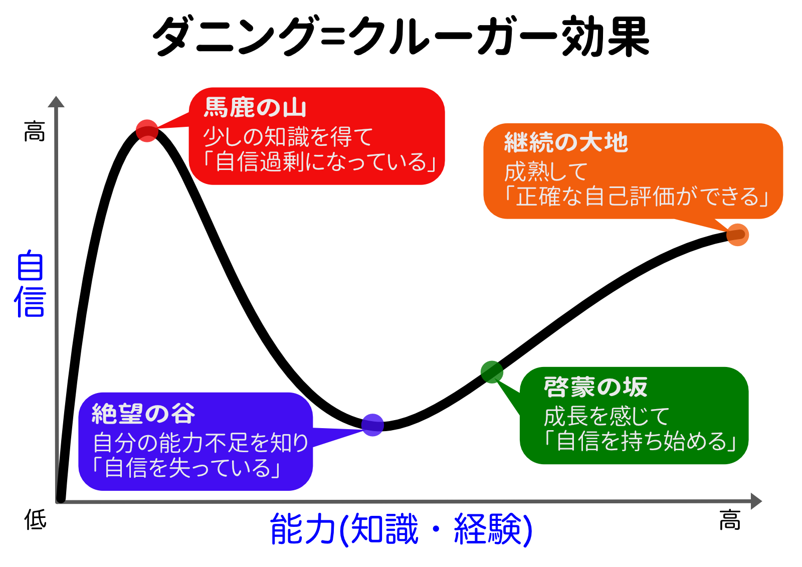 そのため、当時の私は、まさに下図で言うところの 「馬鹿の山」の頂上におり、根拠のない自信に満ち溢れている状態でした。