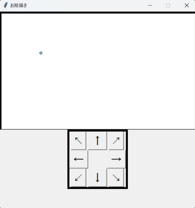 今回は、お絵描きをするため、ペン先を小さな楕円を描画することで表しています。ペン先はボタンを押すと移動するので、座標を変数point_x point_yで管理しています。