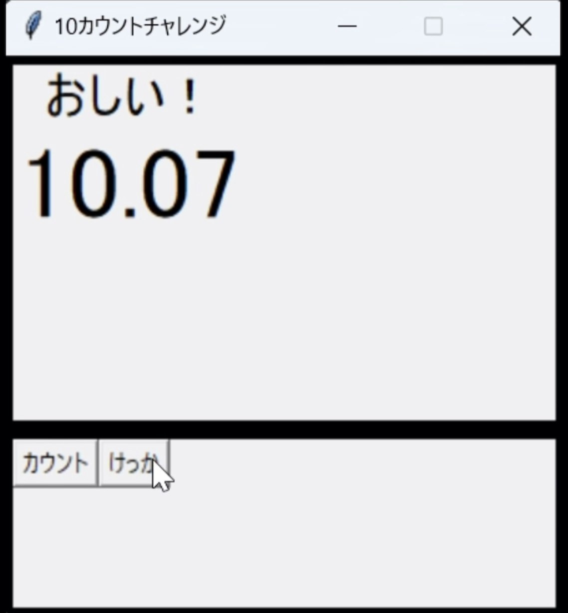 今回は、GUIをつくりたいと思い、ボタンを押す操作を使って簡単なゲームをつくりました。ゲーム名は「10カウントチャレンジ」です。