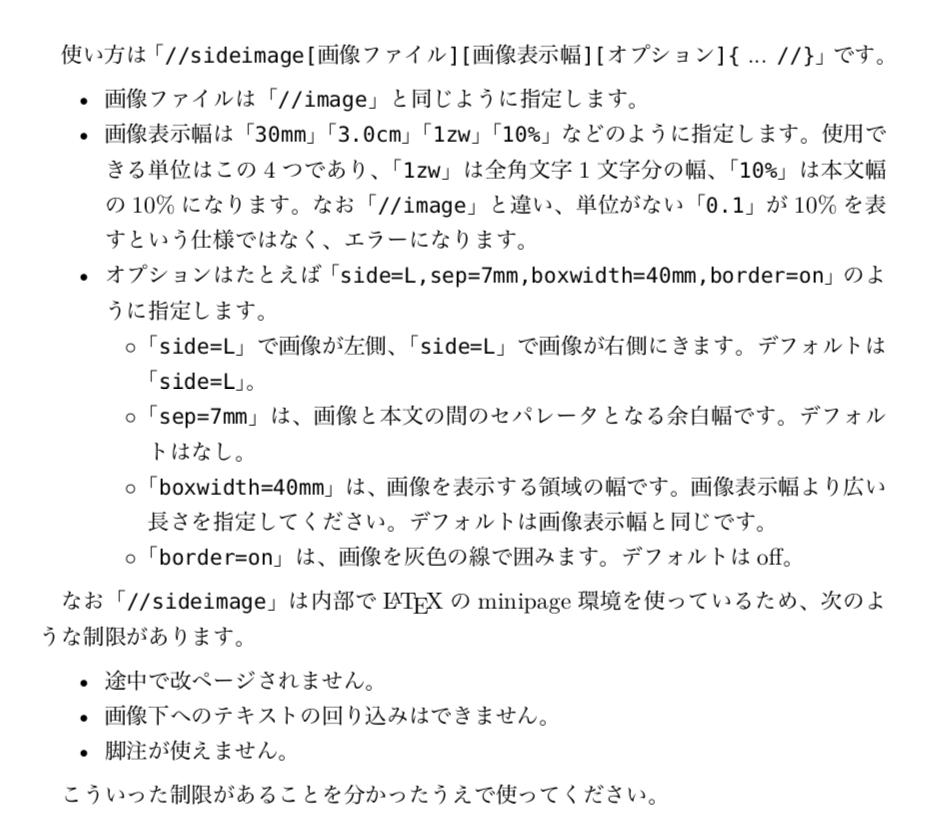 https://qiita.com/kauplan/items/cf17e8d8446d70b5e973 - Re:VIEW 2.5での改善点と残っている問題点