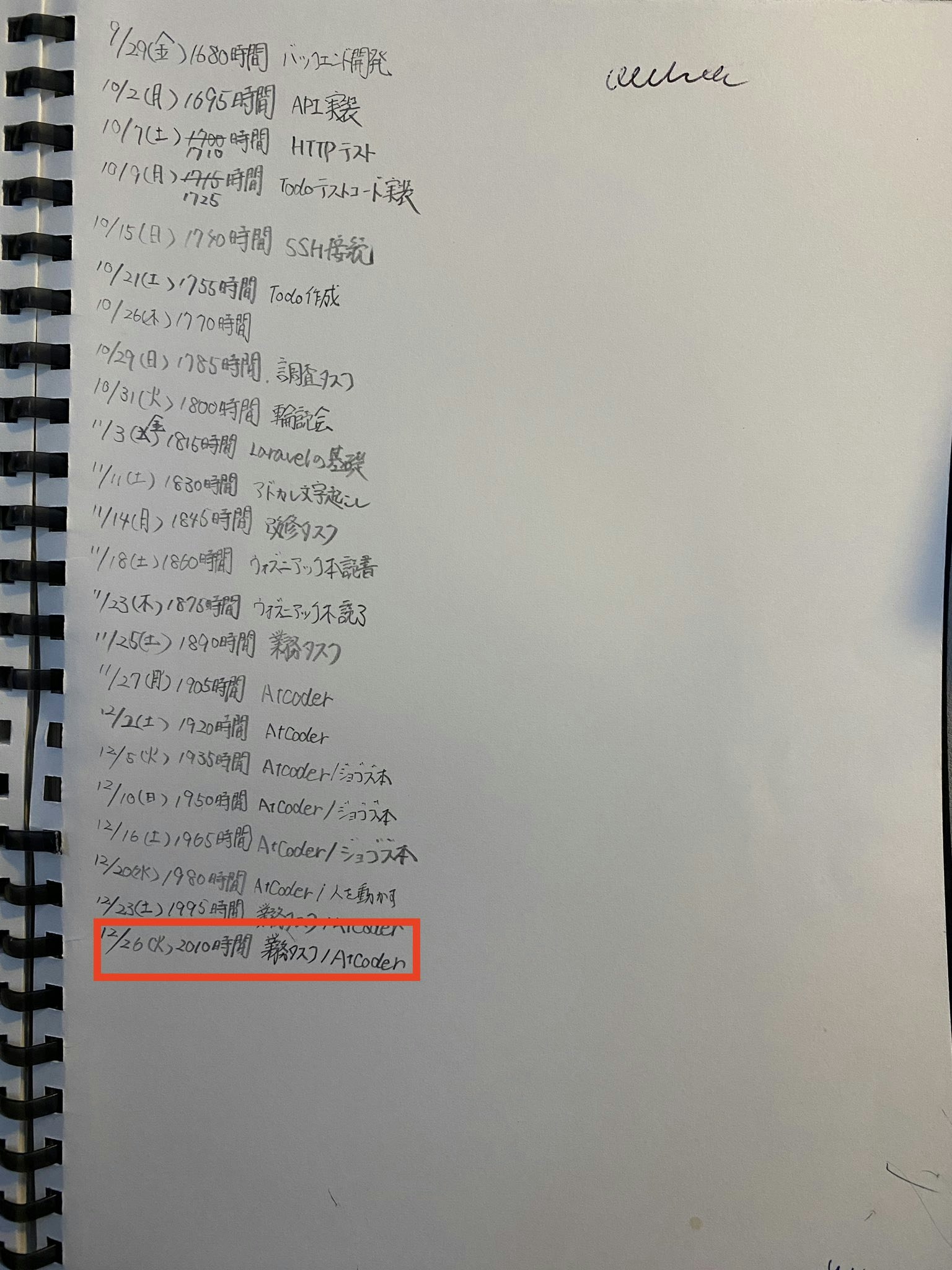 僕が未経験エンジニアの時から続けている学習記録ですが、2023年12月26日に2000時間を超えたので、改めて1000→2000時間からの振り返りをしようと思い今回はそれを記事にしました!