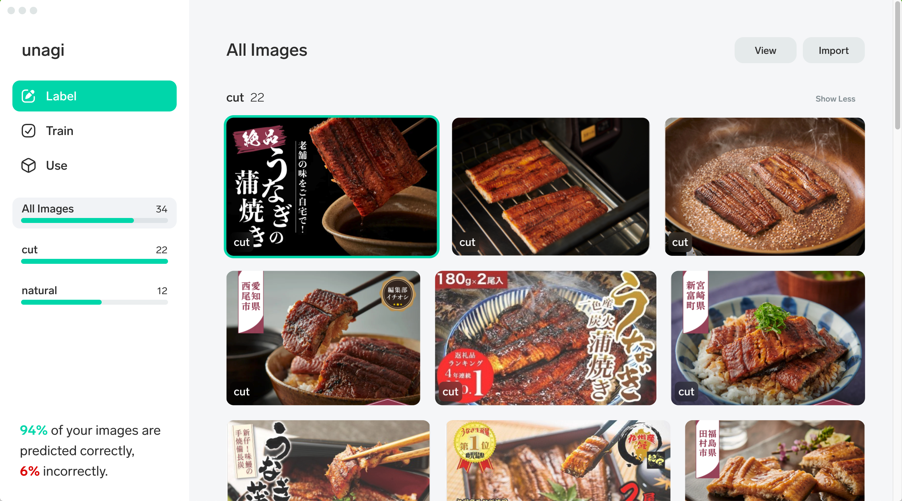 最後に、自分が今年寄付した鰻の写真をスマホで撮って、学習させたLobeに読み込ませてみようと思います。