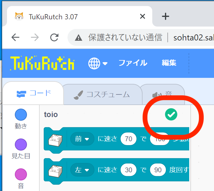 つくるっちエディタをchromeブラウザに表示してからの手順