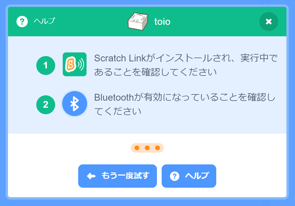 - toio™️ core cube 側は特になにもしなくていいですが、PCにscratch linkをインストールして起動しておく必要があります。また、PCはBluetooth/BLE通信機能を持っている必要があります。