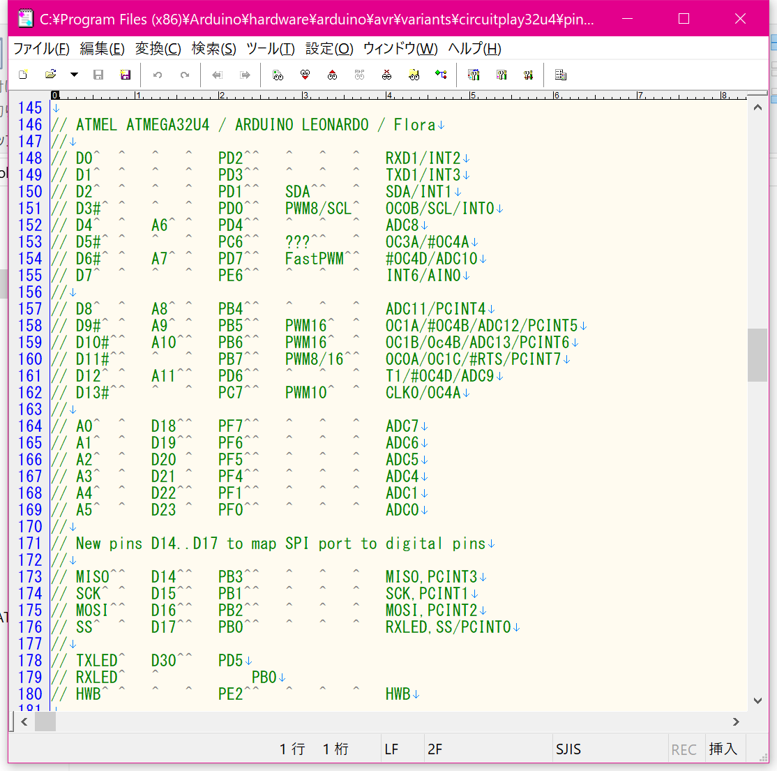 - I2CポートがUNOと違ってADポートと別のピンに割り当てられている(Leonardoと一緒)