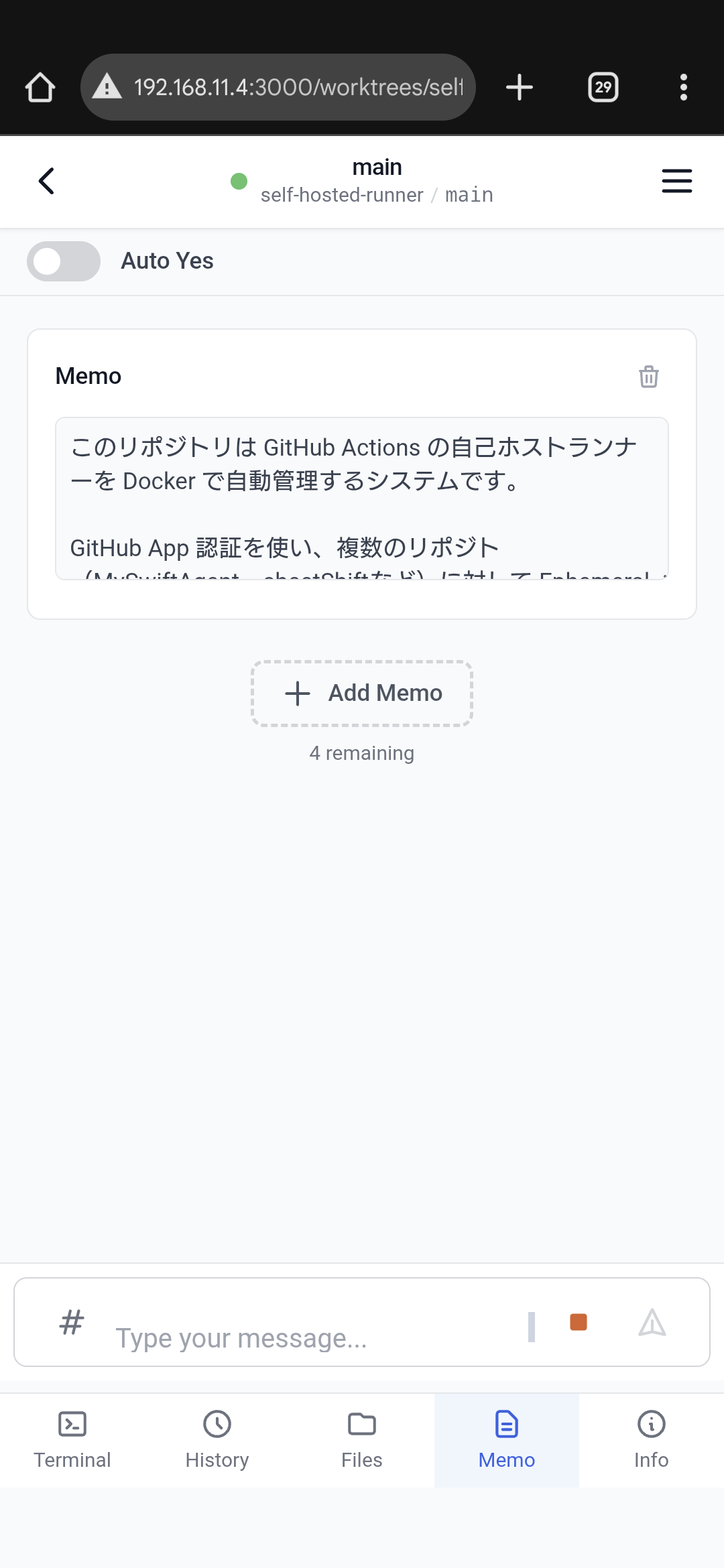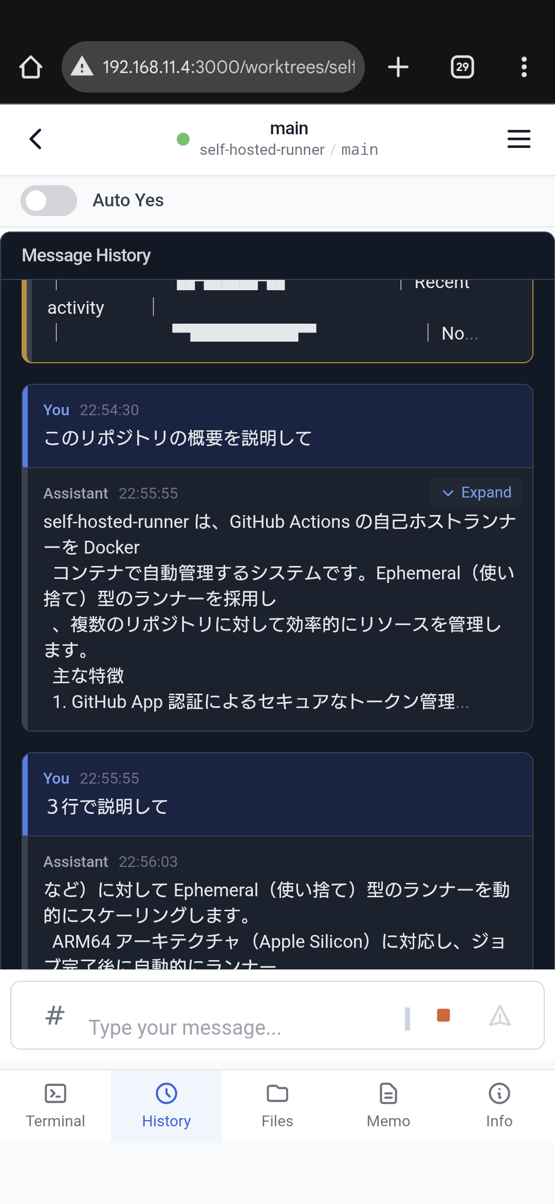 - 同一セッション内でAuto YesのON/OFFを切り替えつつ、安全にタスクを前進できます