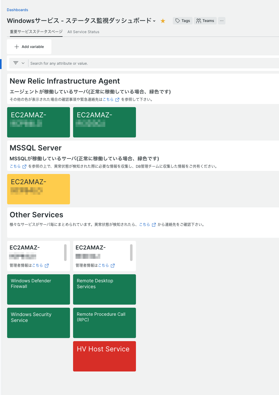 サーバ上で稼働しているプロセスの情報を追いかけて稼働状況を把握することは常識だよと言わんばかりに、実施している人も多いと思うけど、Windowsサーバ上のサービスという観点で、稼働しいるべきサービスの状態はどうなっているのか?あるいは、停止していないといけないサービスは、想定通り停止しているよね?といった観点で監視はついつい後回しにしちゃいがち。そんな痛い思いをしたので、New Relicで簡単にできる対策をQiitaで書いてみたよ。