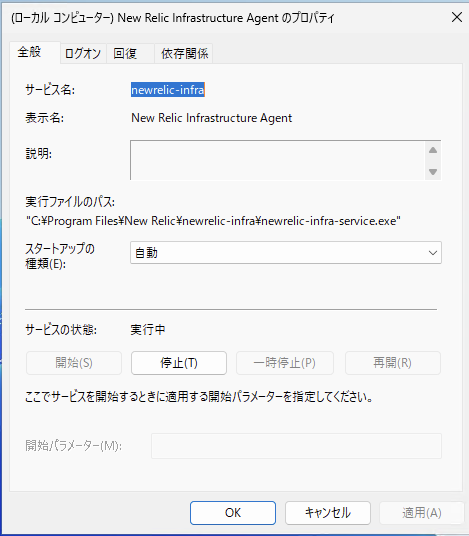 設定後、WindowsサービスからNew Relic Infrastructure Agentを再起動するよ