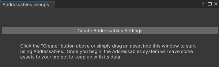 - Selectボタンをクリックして、Addressables Groupsウィンドウを開く