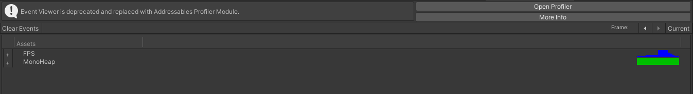 Addressables Groupsウィンドウ内のTools / Window / Event Viewerを選択すると、こんなのが表示されます