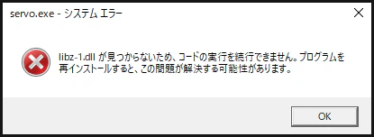 C:\gstreamer\1.0\x86_64\bin\libz-1.dll を servo\target\release にコピーする。