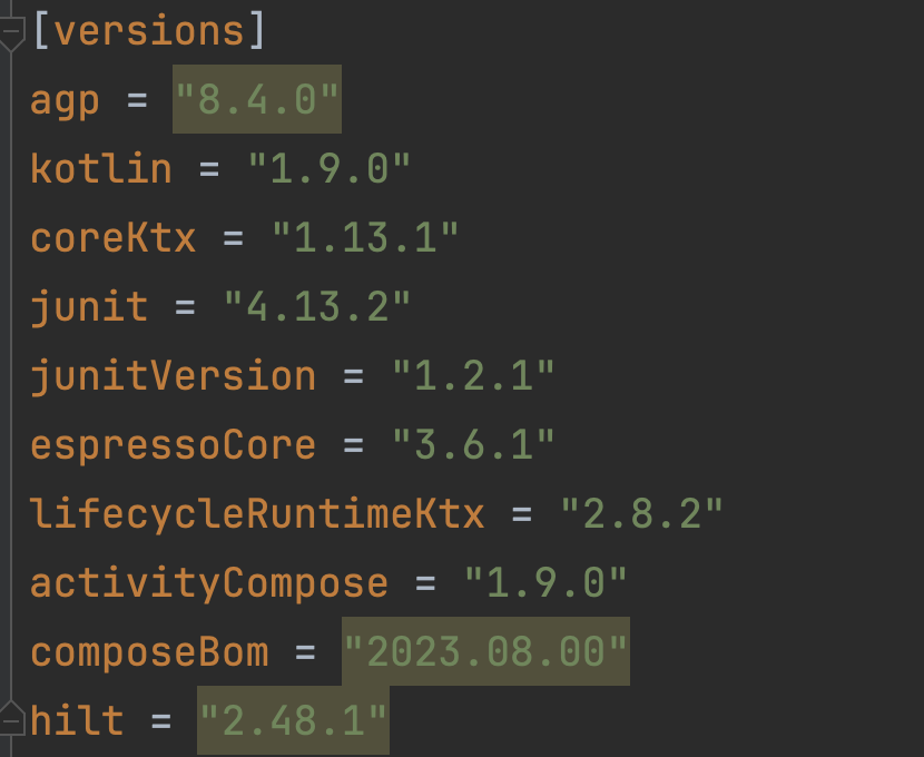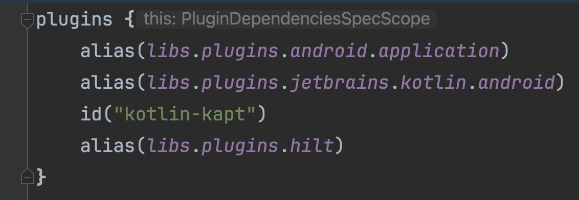 libs.versionsに該当ライブラリバージョンとプラグインライブラリを追加し、gradleに名前を入力して使用しています。 - この方式が推奨される理由は、依存性管理及びバージョンとの衝突も最小化され、維持管理に便利であるため、最近ではこの方式が多く使用されているそうです。