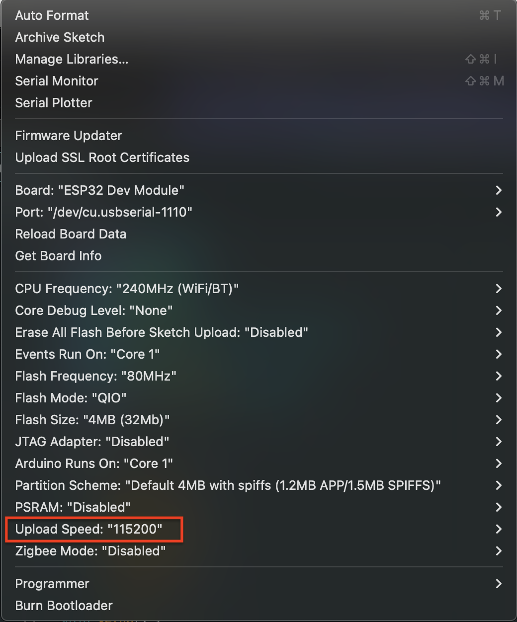 書き込み時にエラーが出ました。921600 -> 115200へ変更しました。