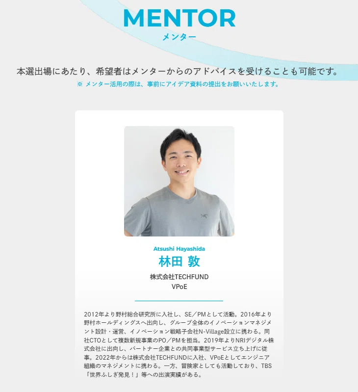 決勝進出の発表から本番までは約2週間。この期間中、希望するチームは技術や新規事業に詳しいメンターと面談を行うことができました。これは本アイデアソンの大きな特徴の一つでした。
