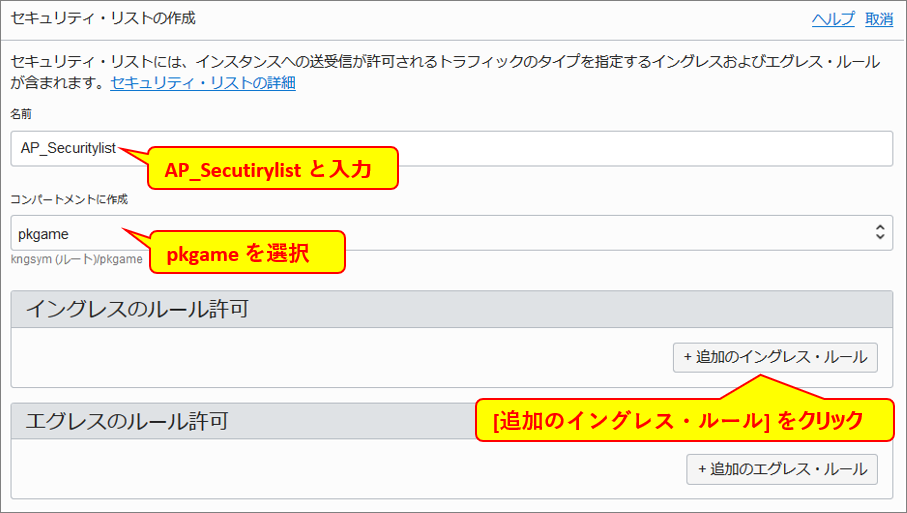 セキュリティリストの作成 手順詳細