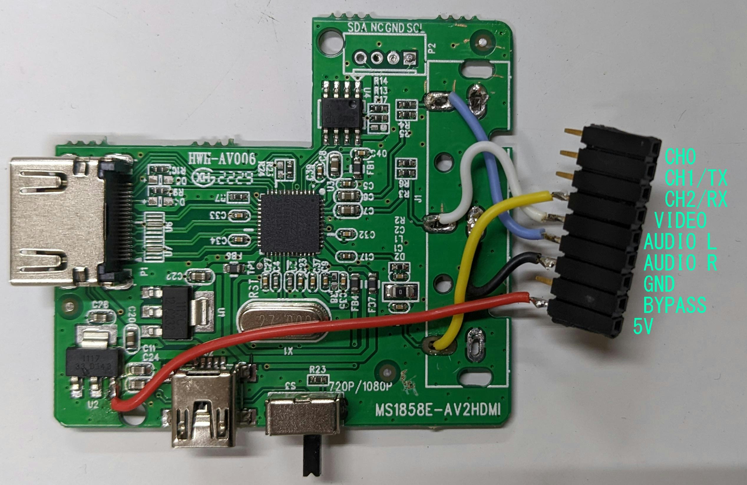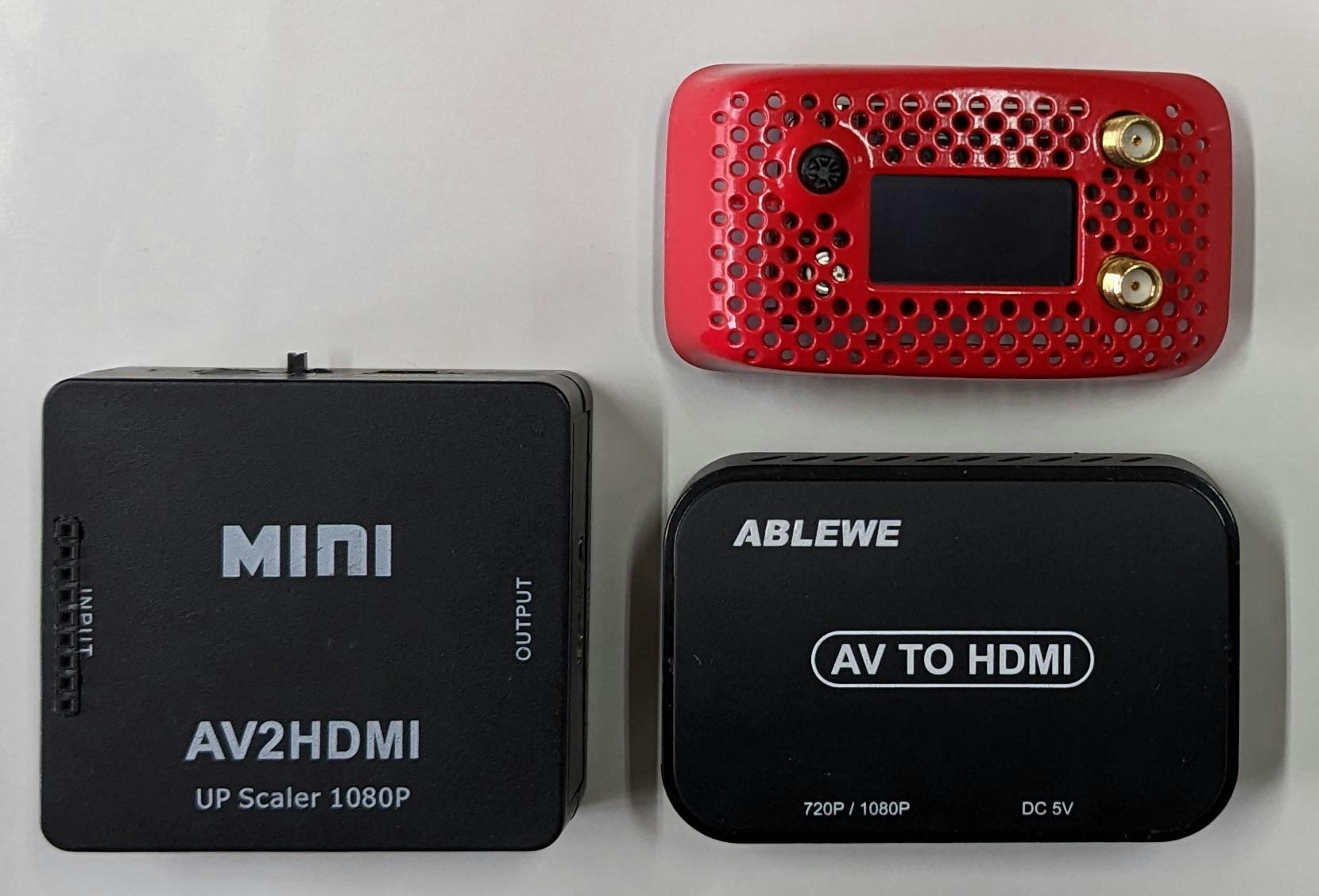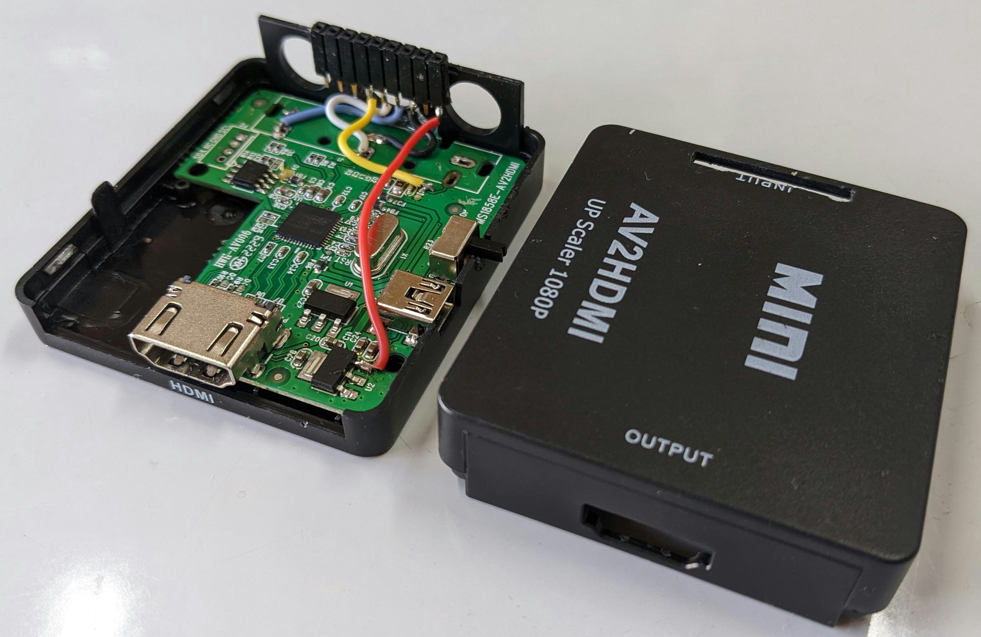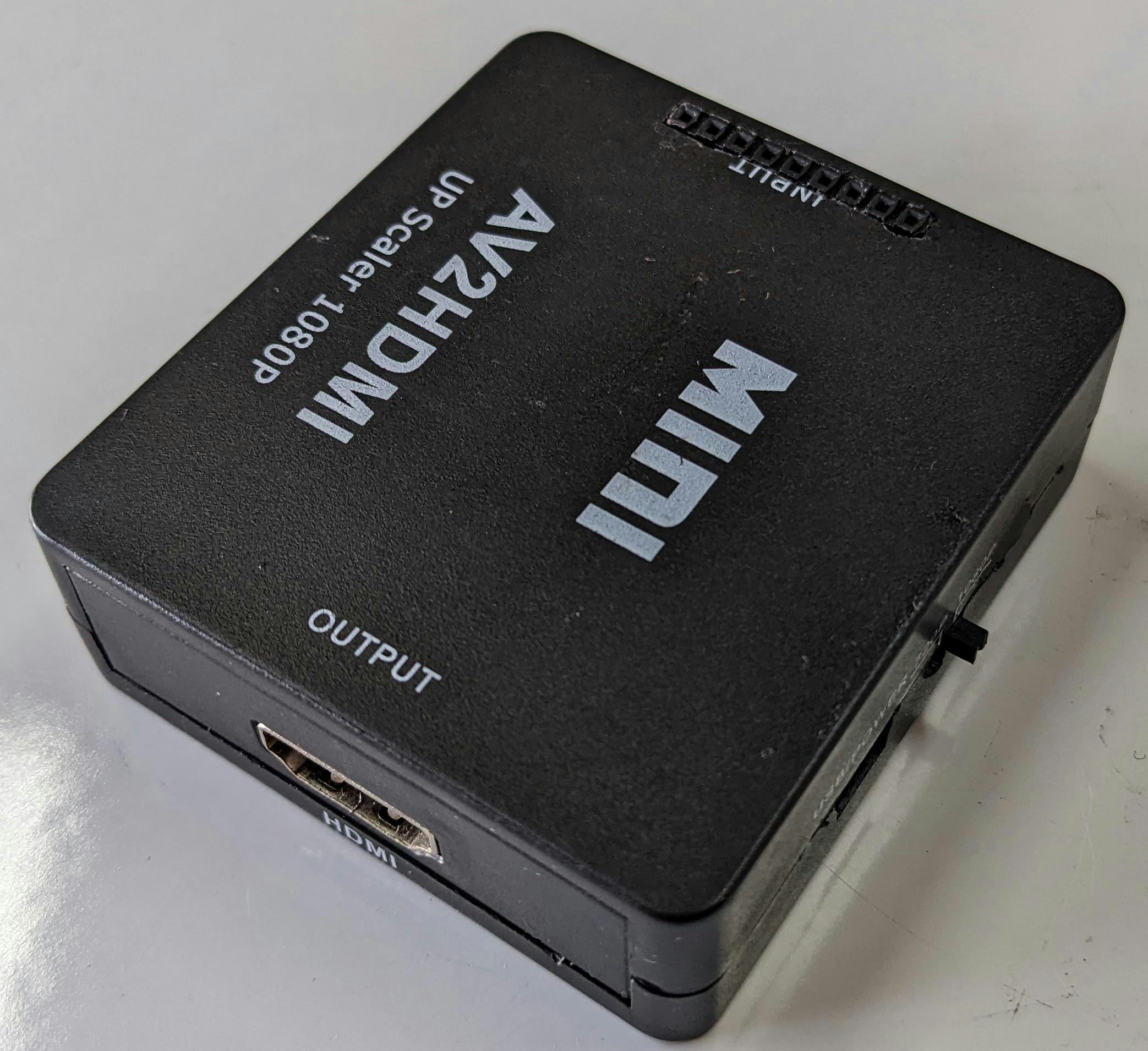 RCA->HDMI 変換器は、形がそっくりで逆変換(HDMI->RCA)のものもあるので、購入の際は注意してください。