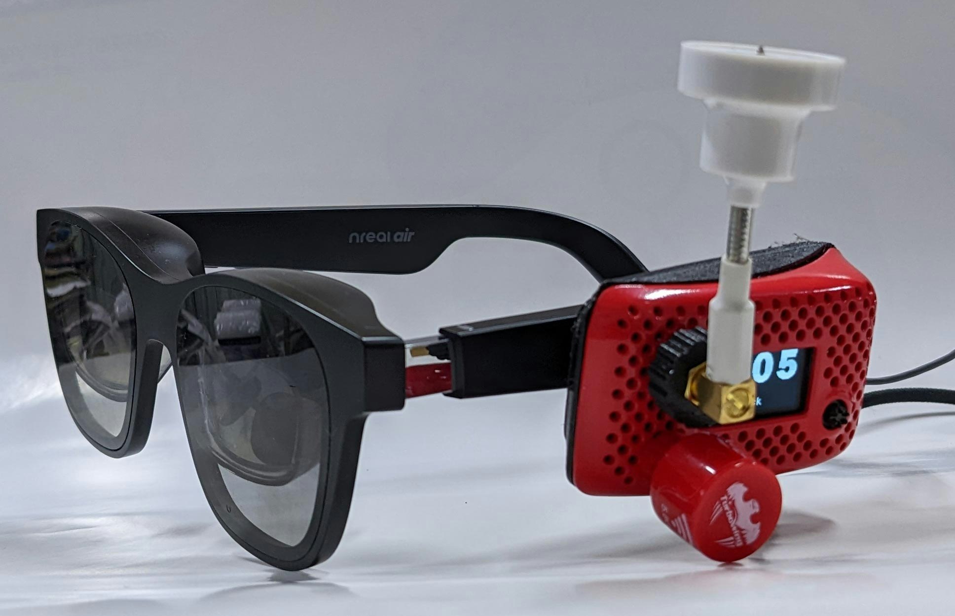 私はすでにFatshark用のFPV受信機を持っているので、この受信器の映像を何とかしてNreal Airに映し出せないかやってみました。