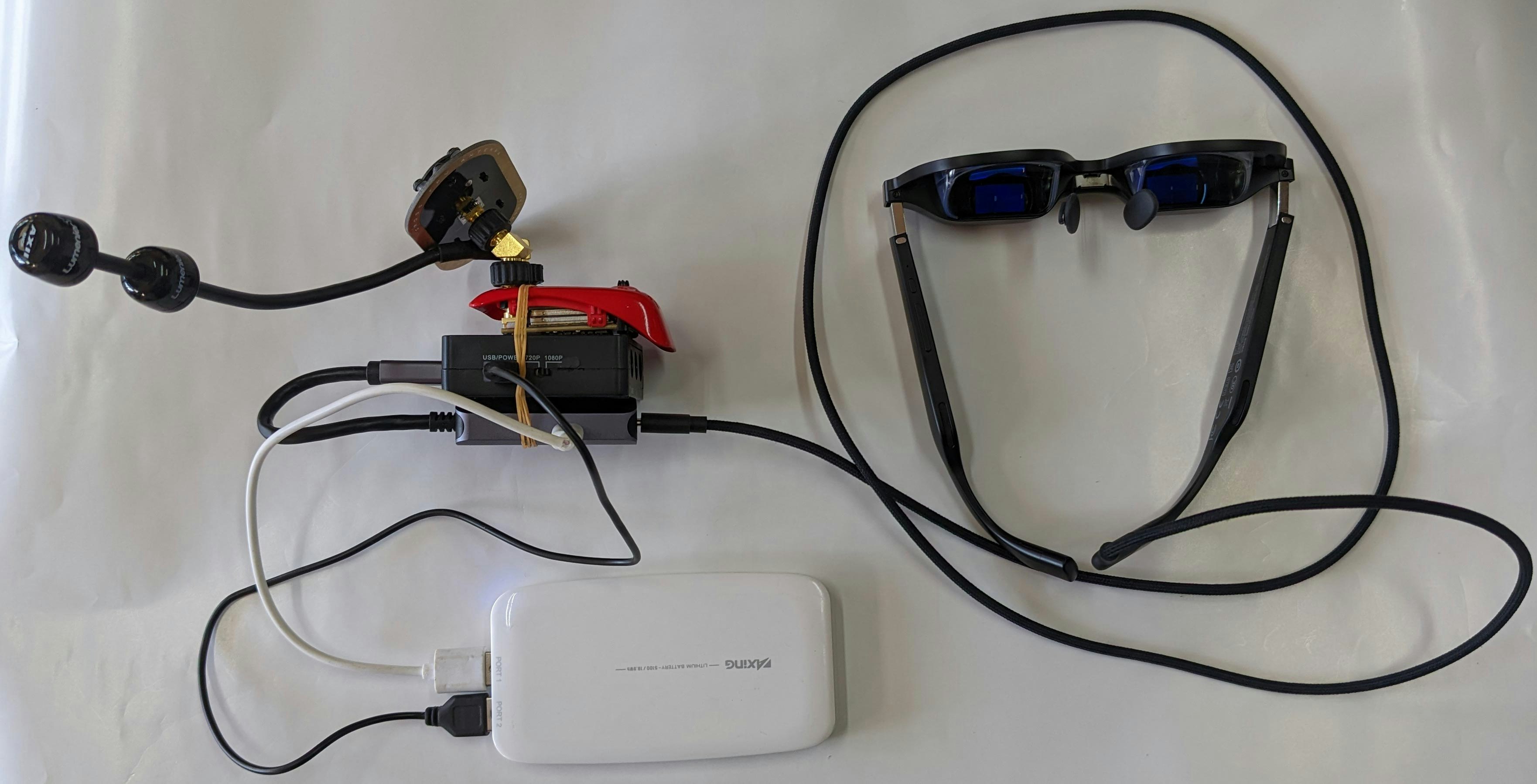 Nreal Airは、Fatshark HDO2 より画像が一回り大きくて見やすく、何より軽いし、外もうっすら見えるので、これは目視飛行扱いになるんじゃないか?画像が切れても目で追えるのっていいよね。