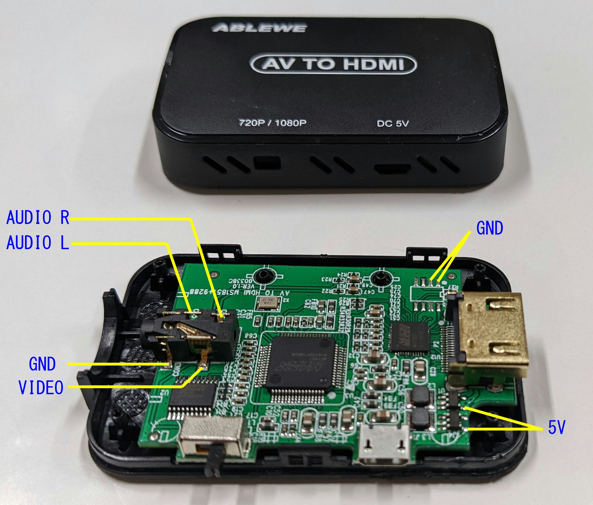 ABLEWE RCA to HDMI 変換コンバーターの場合の、配線は下記のようになります。