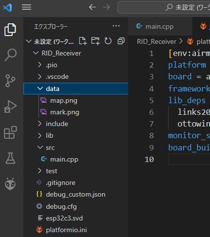 何故かと言うと、ESP32C3のSPIFFS領域にファイルを書き込む方法がArduino IDEでは見つけられなかったからです。(ESP32 や ESP8266用のアップローダはあった。)