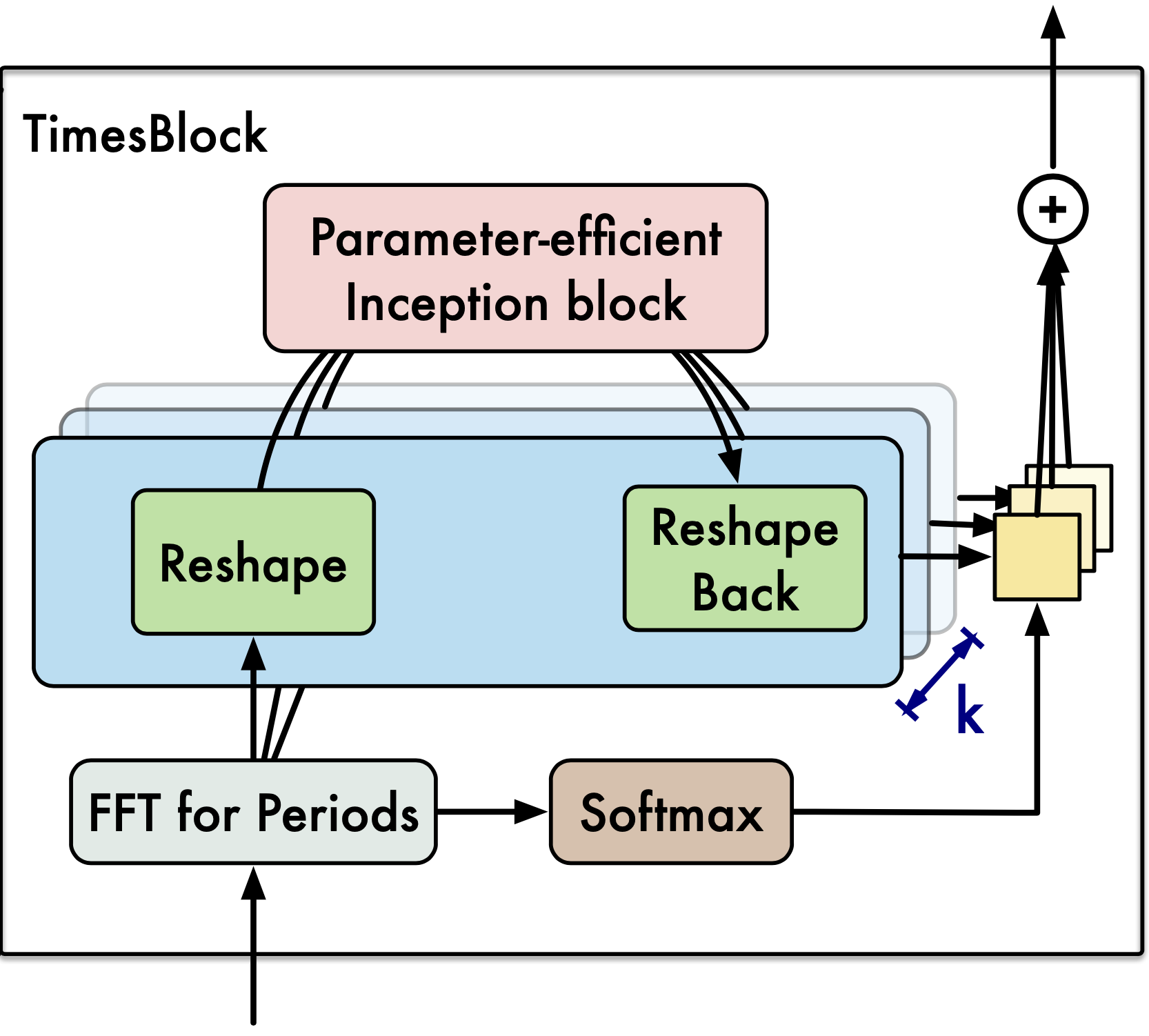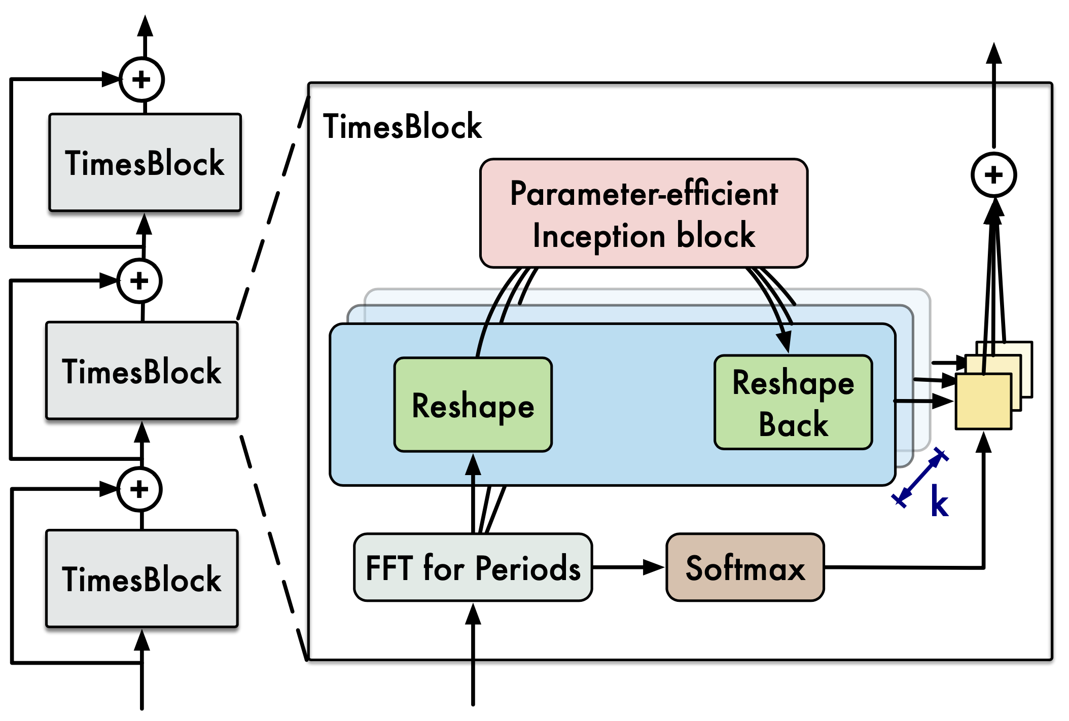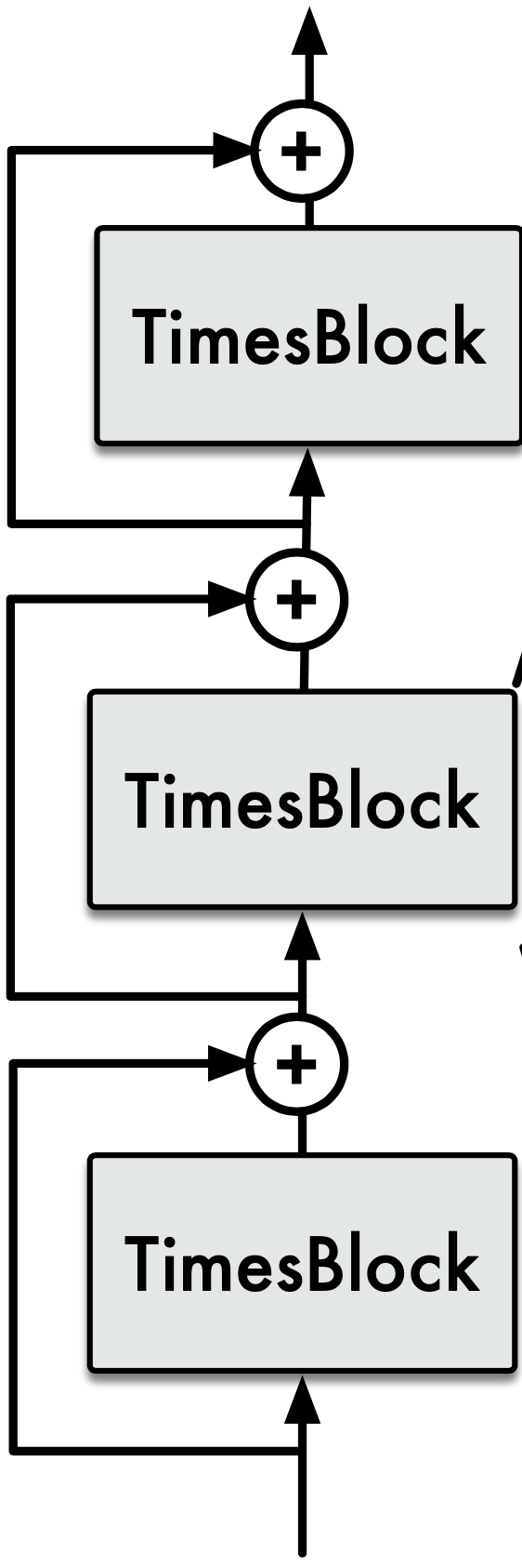 TimesNetはTimes Blockと呼ばれるブロックをスタッキングして構成されています。