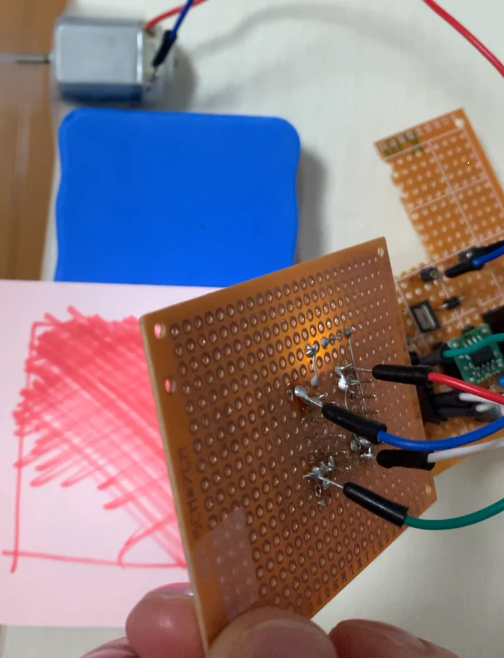 実際にモーターをつないで色紙を近づけると、狙い通りにモーターの回転速度を制御することができました。