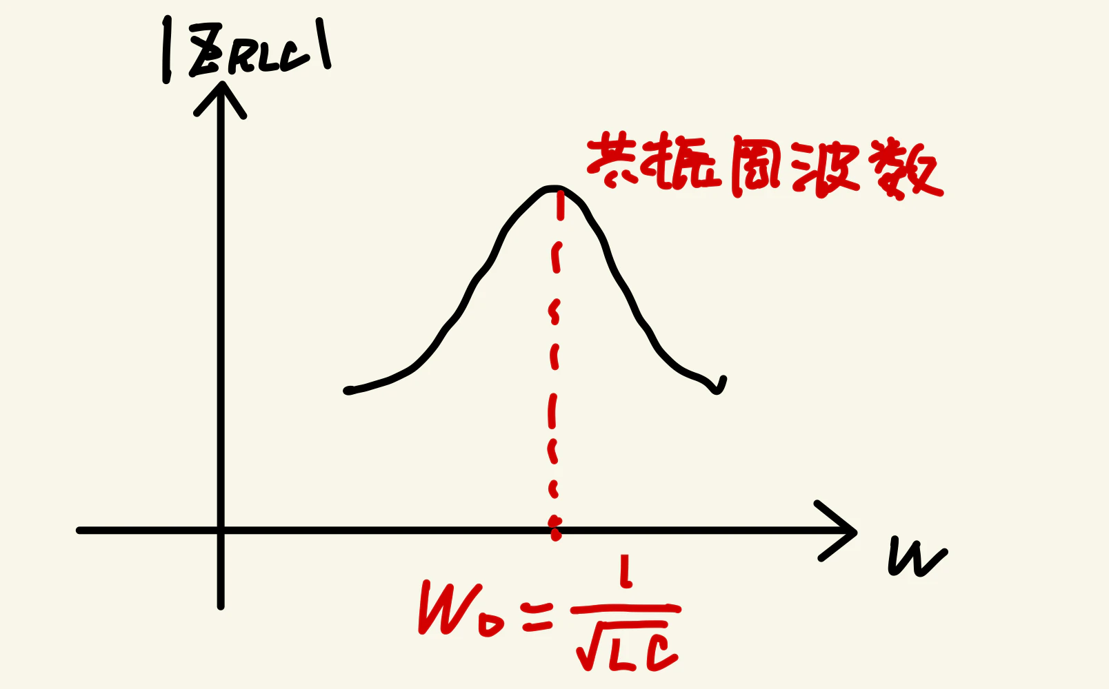 ![]() 図3:RLC共振回路のインピーダンス特性 |
