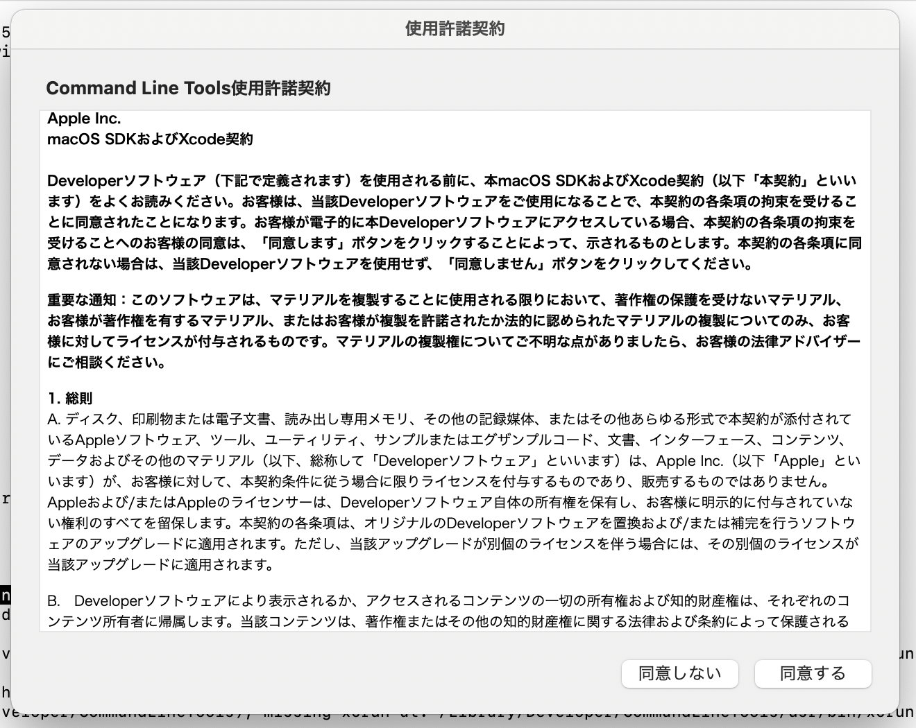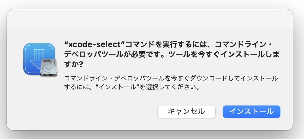 xcode-selectコマンドでコマンドライン開発者ツールをインストールします。