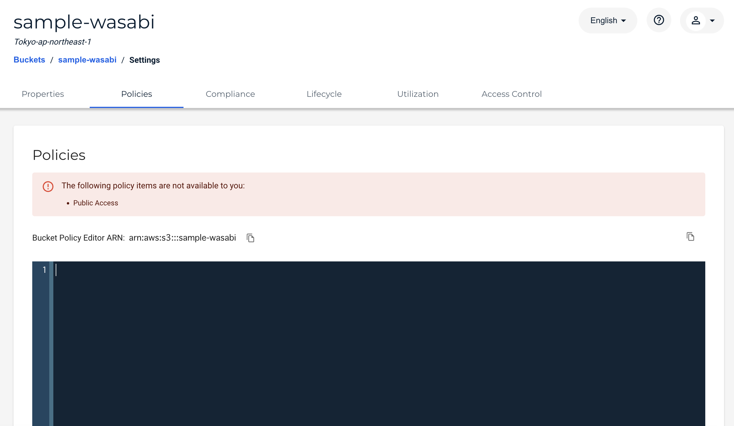 "AWS": "arn:aws:iam::123456123456:user/sample-wasabi-user-1" // 作成したユーザーを指定