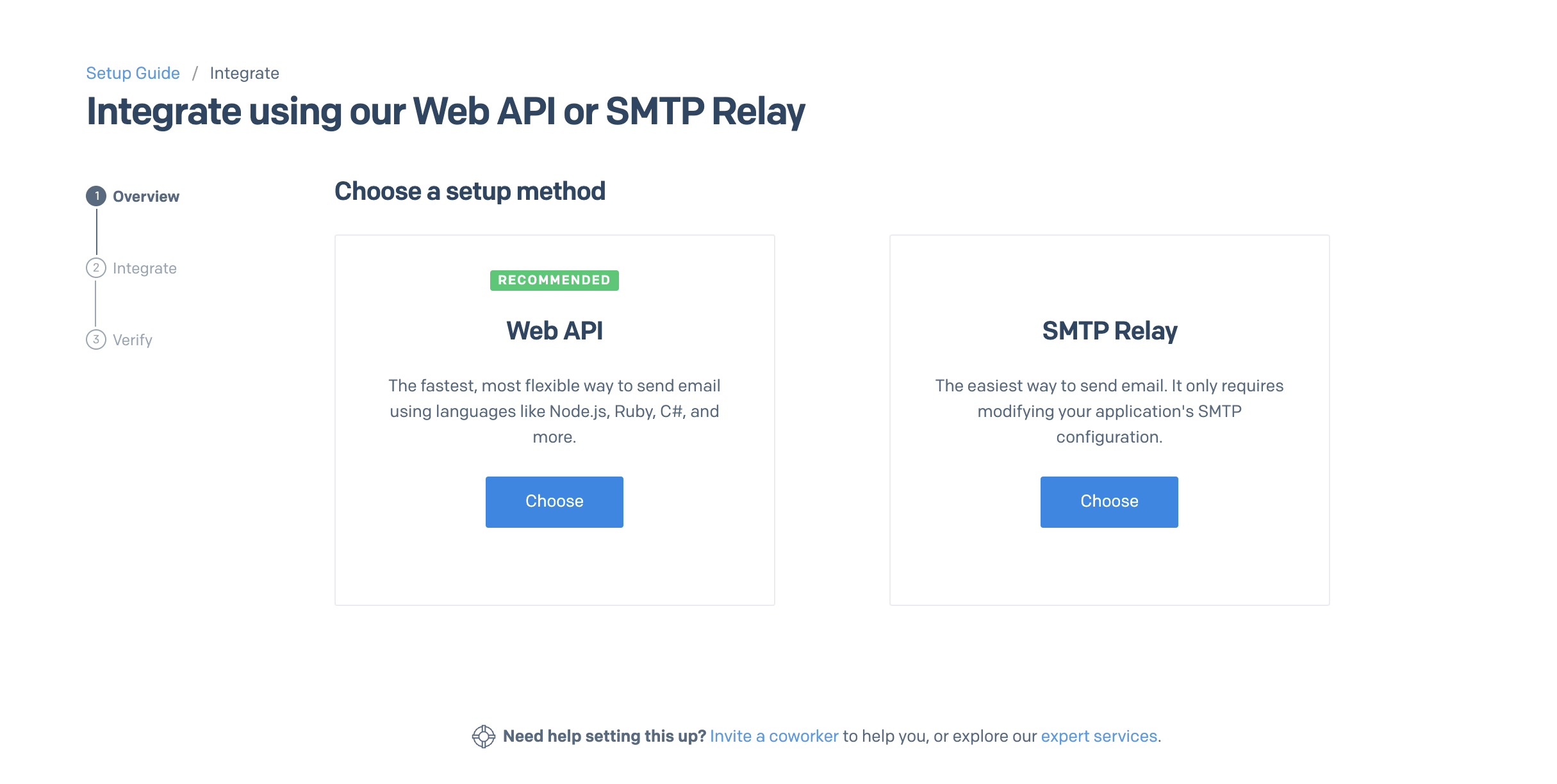 マイページのダッシュボードから、Email API >> Integration Guideへ進みます。