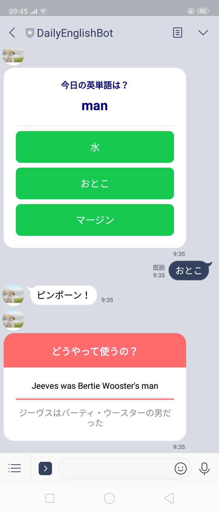 実際に使えるものがいいなと思ったので、気軽に英語を勉強できる英単語帳のようなシンプルなbotにしました![]()