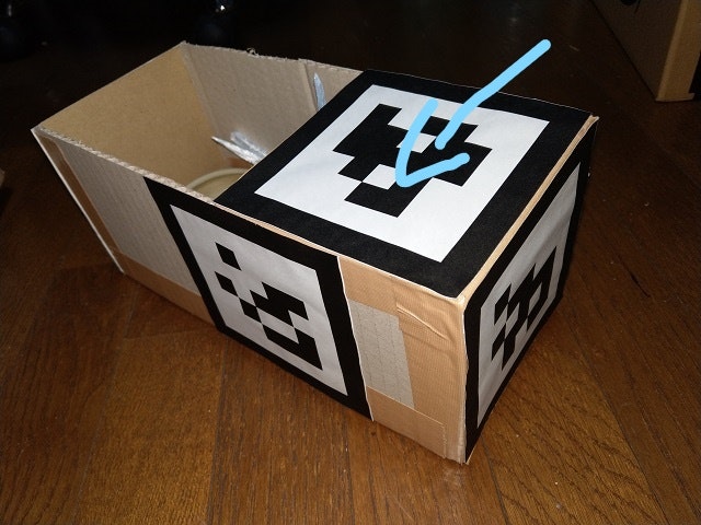 - Aruco Markerと言う高速認識に適したQRコードを箱状に配置して、そのQRコードの向きを判定することで、トラッカーの代わりが出来る。