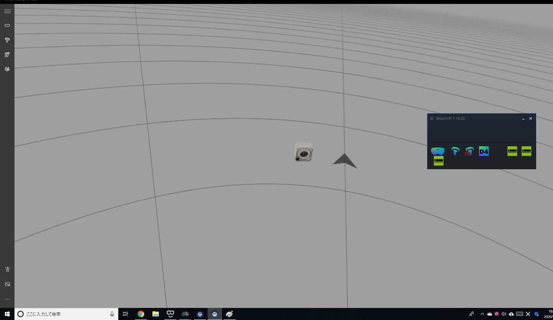 恐らく、自分の足元か後方にカメラと仮想トラッカーのオブジェクトが見えるはずです。