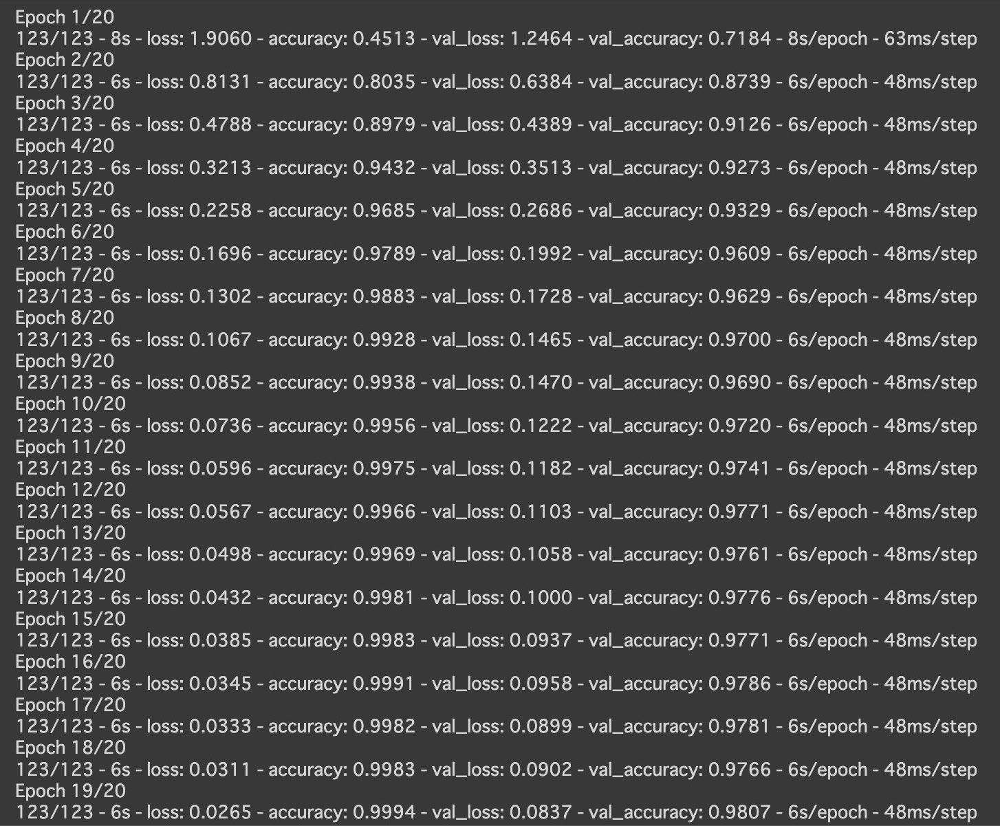 結果、精度80%程度で容量33MBのモデルになりました。