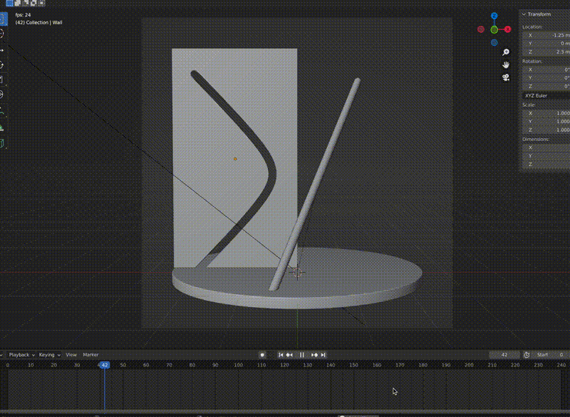 壁に棒が触れるタイミングが129フレーム目で、完全に通り終わるのが233フレーム目だったのでここで定義しています。