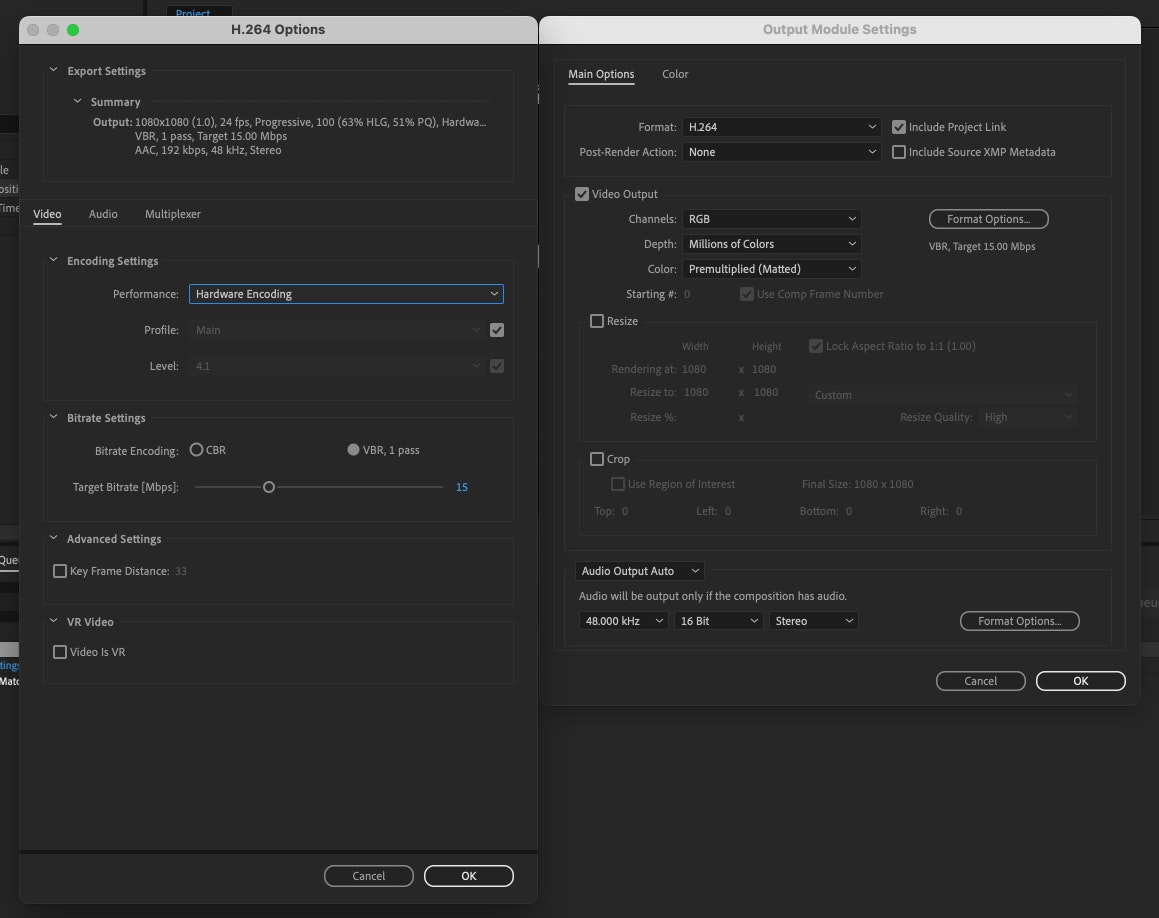 例えばAfter Effectsの書き出し設定を見てみましょう。