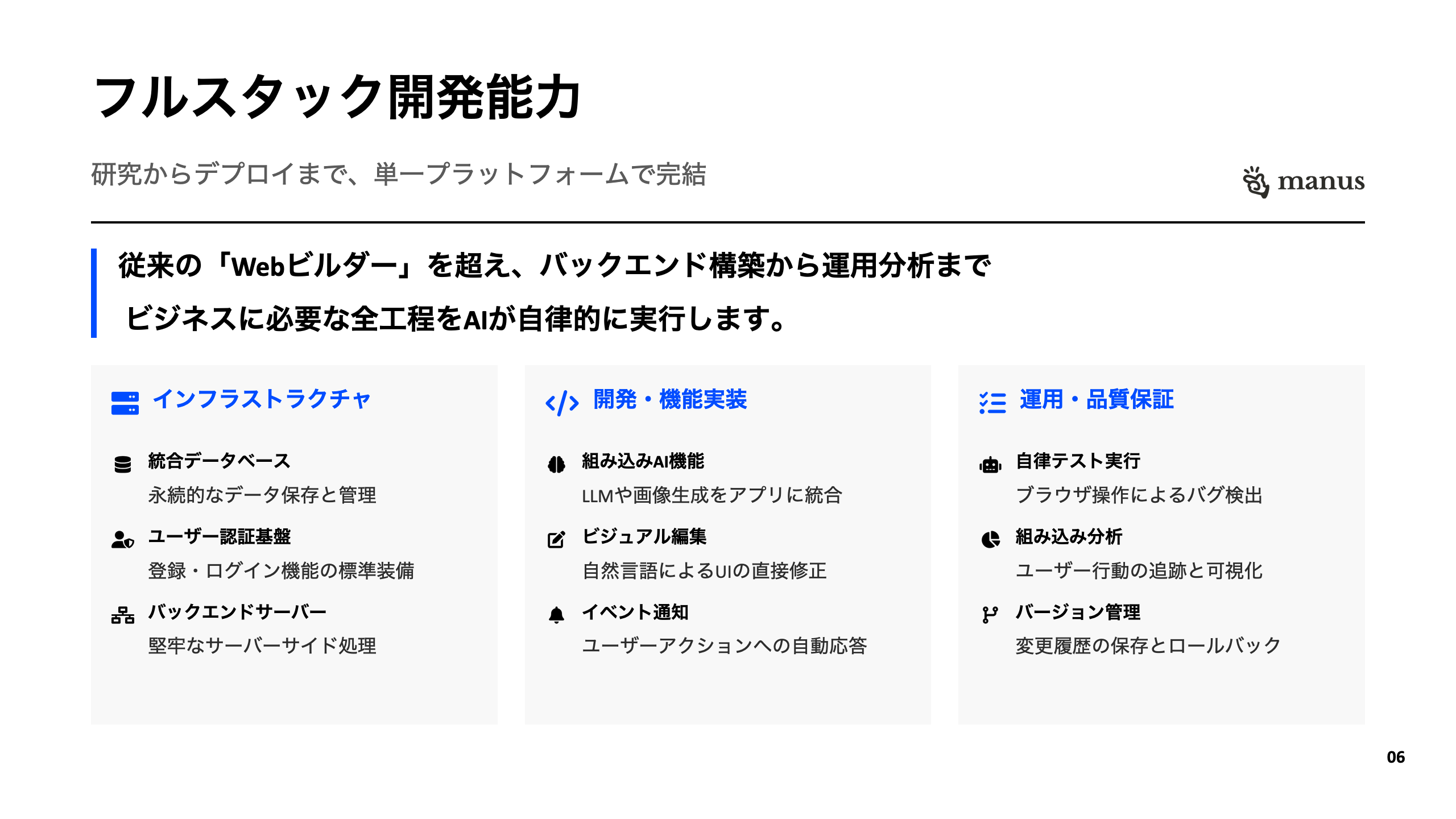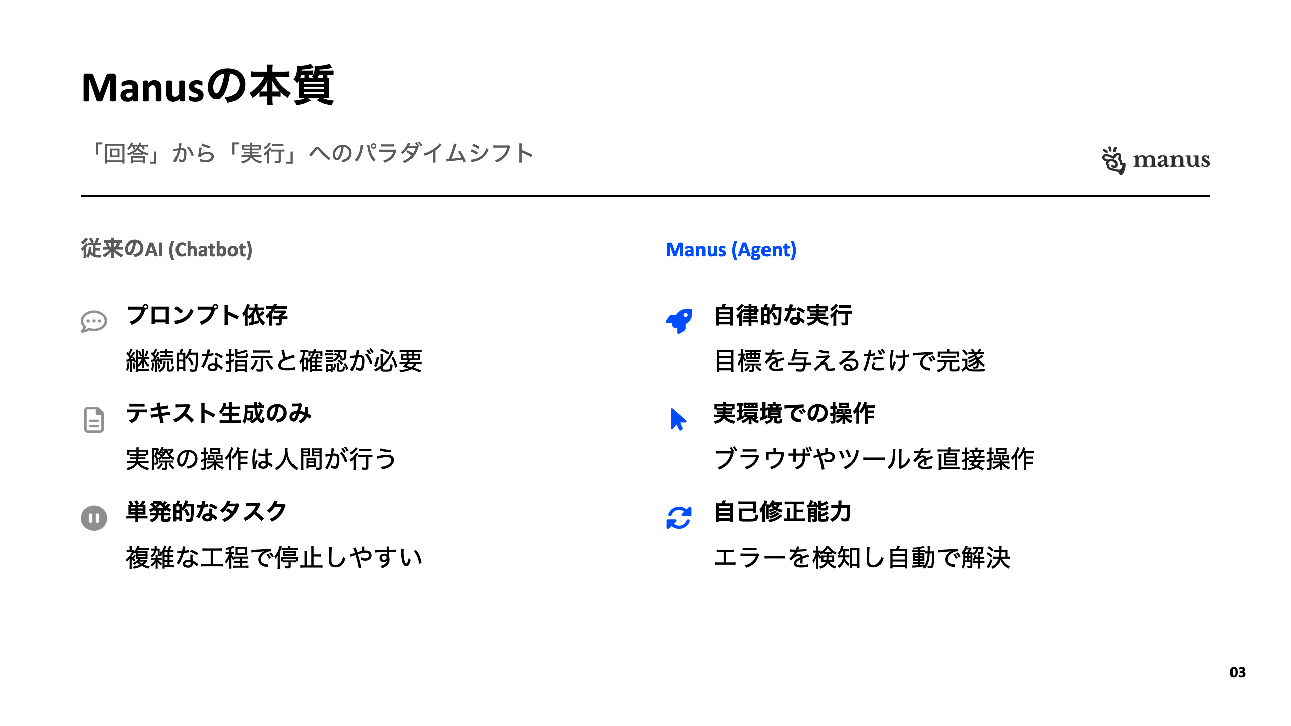 まとめとして、他のAIツールよりもかなり自律的に動いてくれるし、編集可能なデータとして出力もしてくれるので、今日参加されている方にとっては役立つのではないでしょうか。
