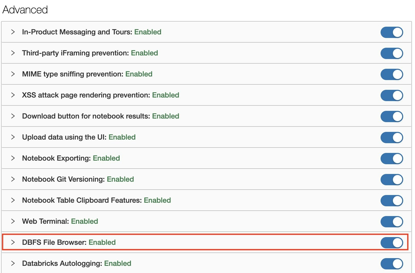 まず、Web UIからファイルをアップロード機能が有効化されているか確認します。
