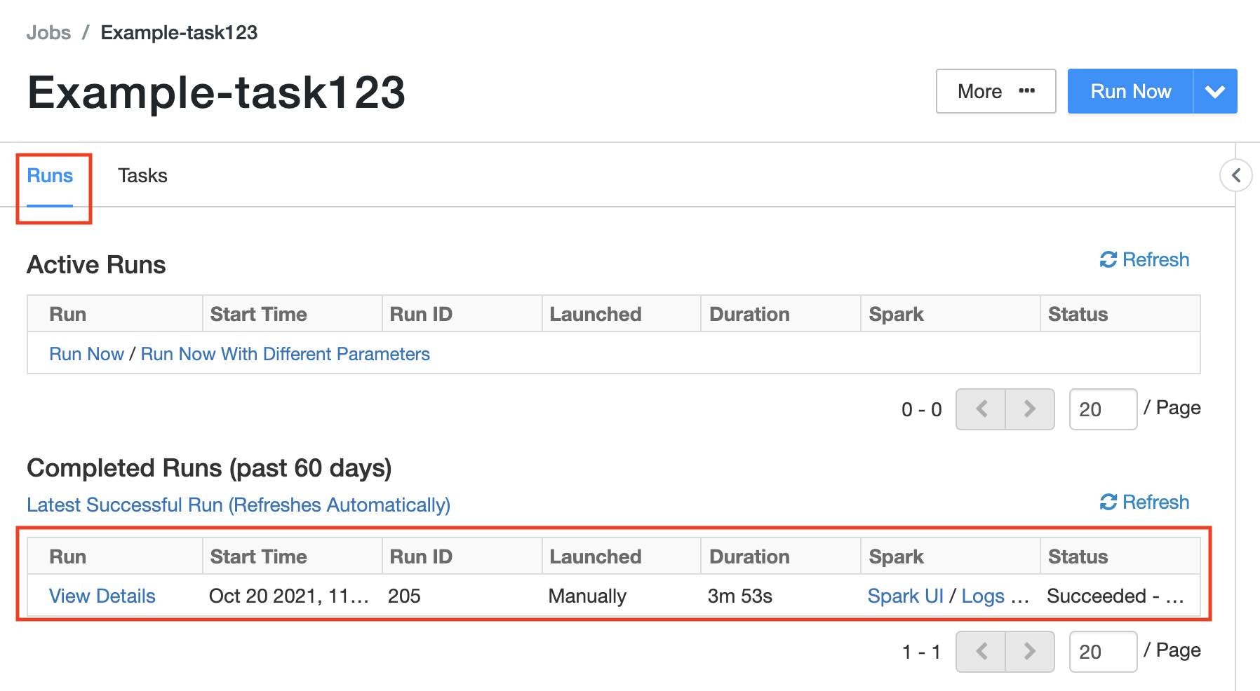 実行が終了するとRuns