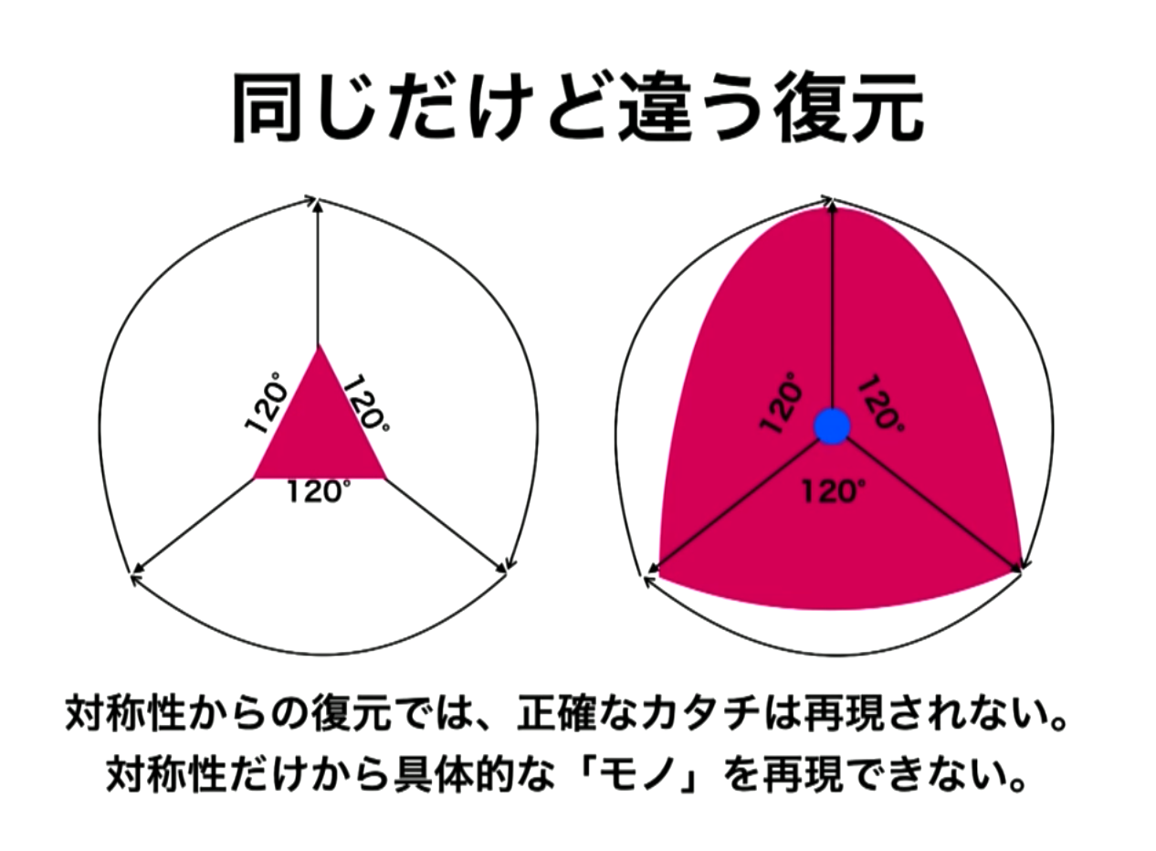 異なる舞台間で三角形というものを対称性という情報で伝えて復元できるか考える |