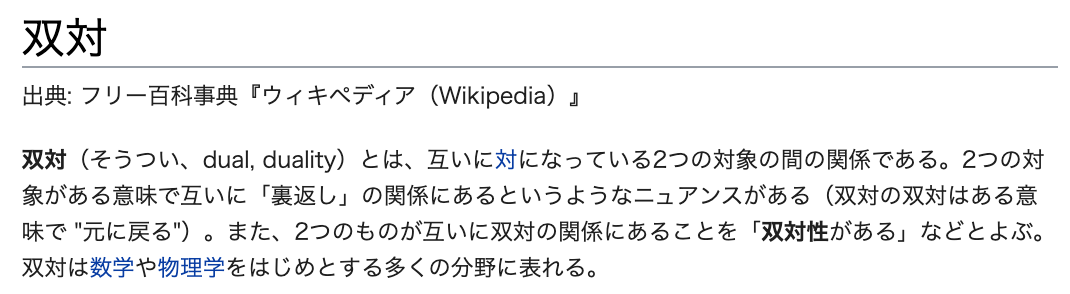 ここでさらに「随伴」という双対的な概念を導入します。双対とは、wikiによれば2つの事象が互いに「裏返し」の関係にあるようなニュアンスのものと説明されていますので、そのようなイメージのものだと一旦しましょう。