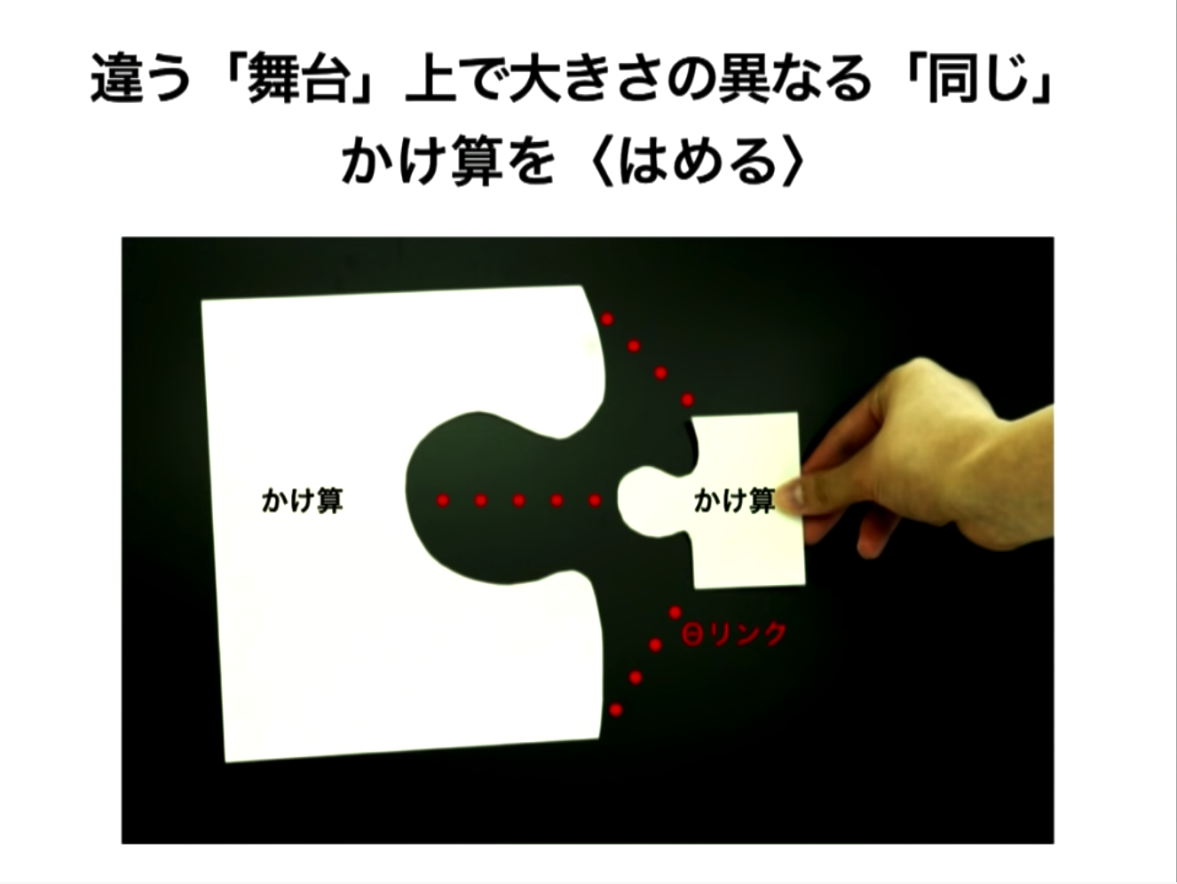 上記の例で言うと入れ子の中のピースは、大きさが異なっているのでピースがハマる舞台とそうでない舞台があるようです。すなわち縮尺という情報を与えてやれば良いわけです。ここからヒントを得て入れ子の中にもし同じと評価されるものが存在するならば、何かしらの変形の方法というものを伝えてあげれば、異なる舞台間のものが同じなのか、同じでないならどのくらい違うのかを舞台間の通信により知ることができます。