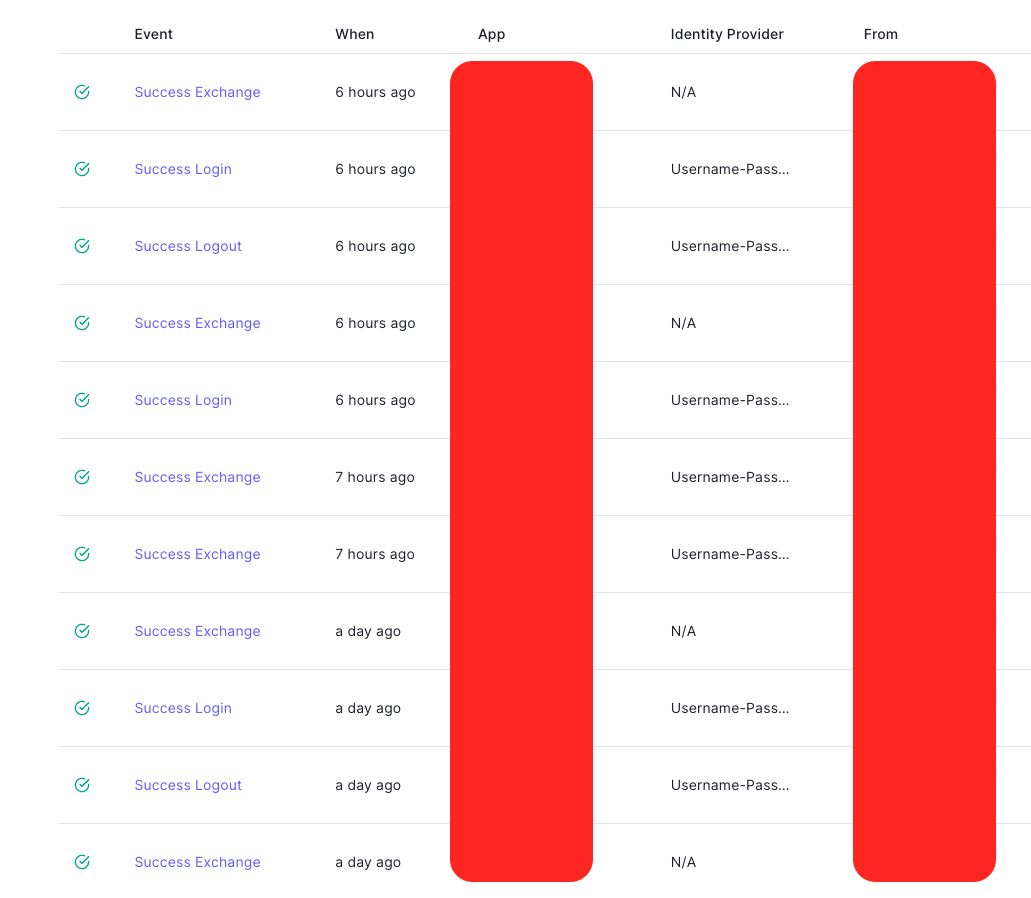 それぞれのユーザがいつログインしたか、ログアウトしたか。トークンを交換したか。それに成功したか、失敗したか。全ての情報はデフォルトでロギングされる。