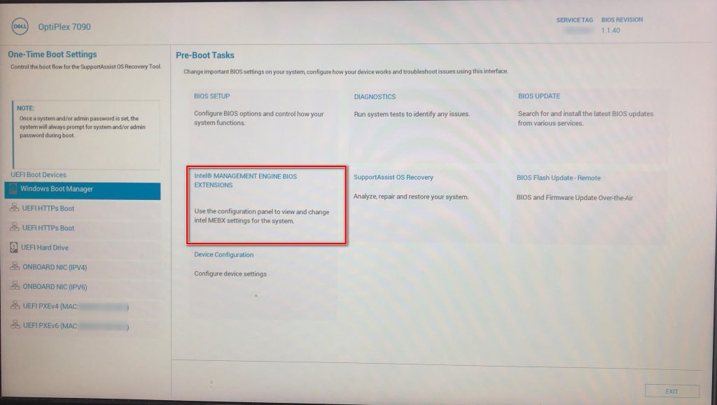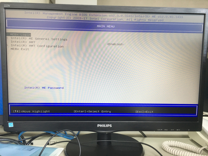 “Intel Management Engine BIOS Extension (MEBx) ”が表示される