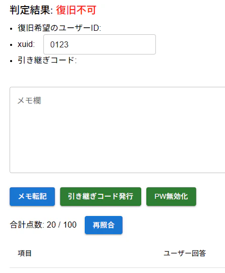 ・各ヒアリング項目に対する判定と、最終的な復旧可否の結果を表示する