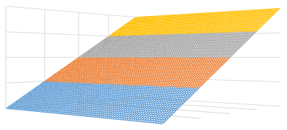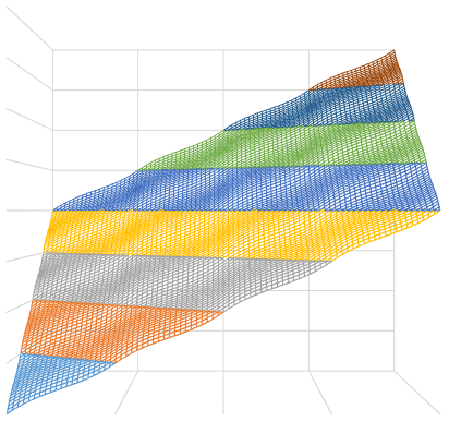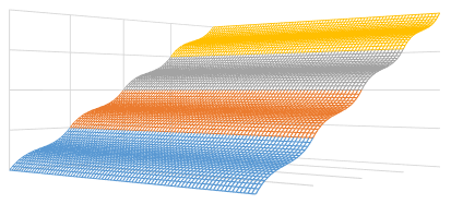 For a simple gradient image whose intensity increases monotonically only along the $x$ direction, the following shows bicubic interpolation examples. The images below are 3D plots of intensity Z for the input image and interpolated images.