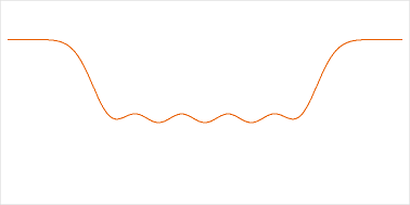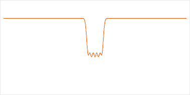 Intuitively, each edge pixel acts like a point source, and the interpolation result looks like an arrangement of one-quarter segments of the convolution kernel. Below are 3D plots of the bicubic convolution kernel and the bicubic interpolation of the 45-degree binary image from the same viewing angle.