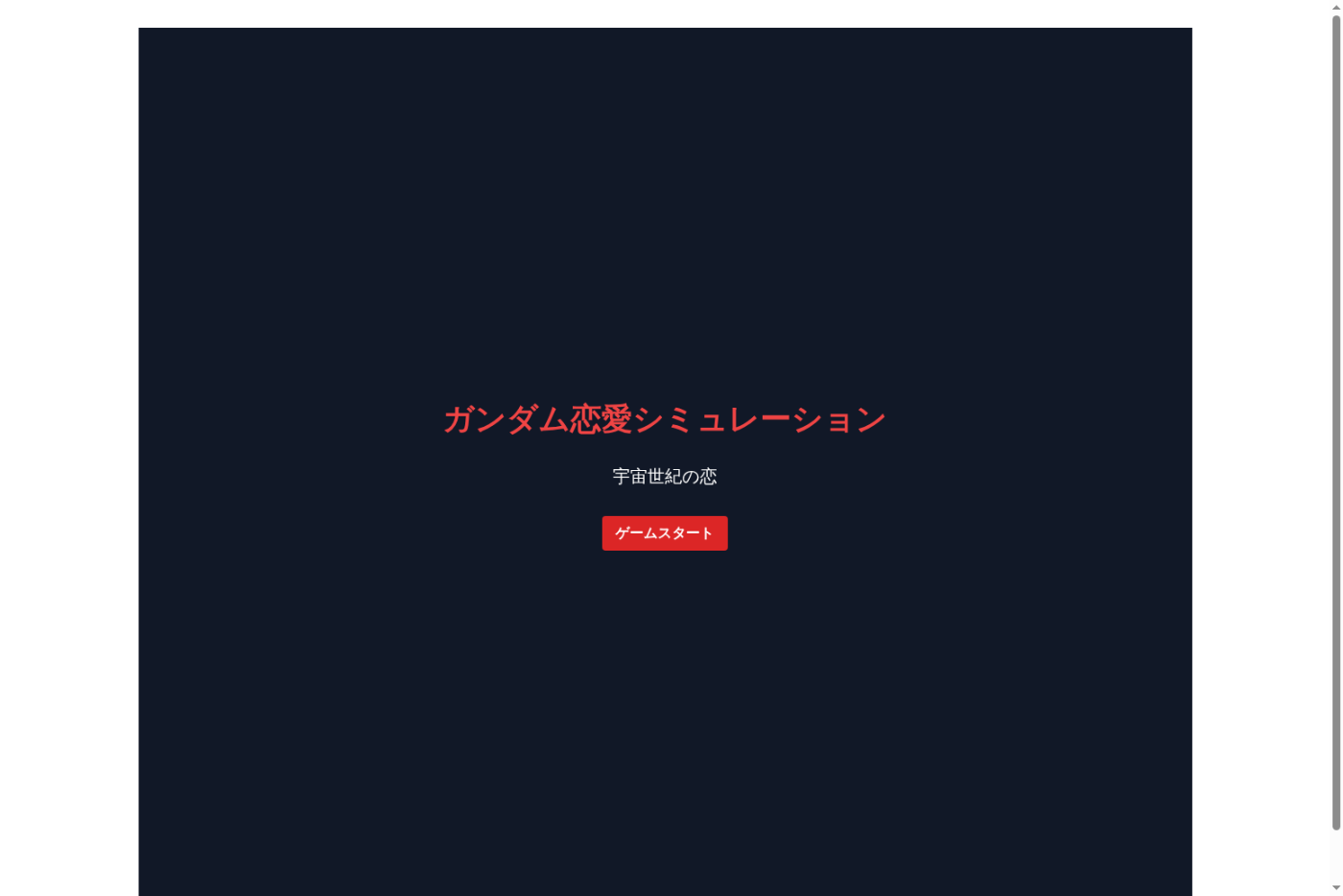 背景で記載したやつ。ガンダム恋愛シミュレーションは、宇宙世紀を舞台にした恋愛シミュレーションゲームです。ガンダムの世界で恋愛を楽しめます。(選択肢はなく、勝手に幸せなるので、楽しめているかは不明。ただ自分はやってて爆笑しました。