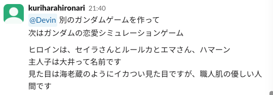職場で Devin にガンダムの恋愛シュミレーションゲーム作ってよってバカな依頼がきまして